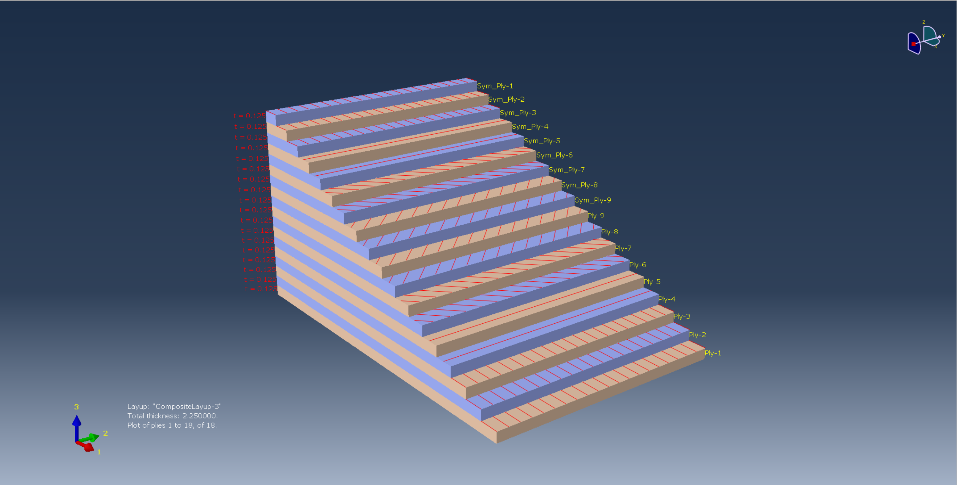 - An initial layup was determined using my python program. The model was then re-analysed using FEA in ABAQUS. The layup was further optimised based on stresses shown in the FEA model.