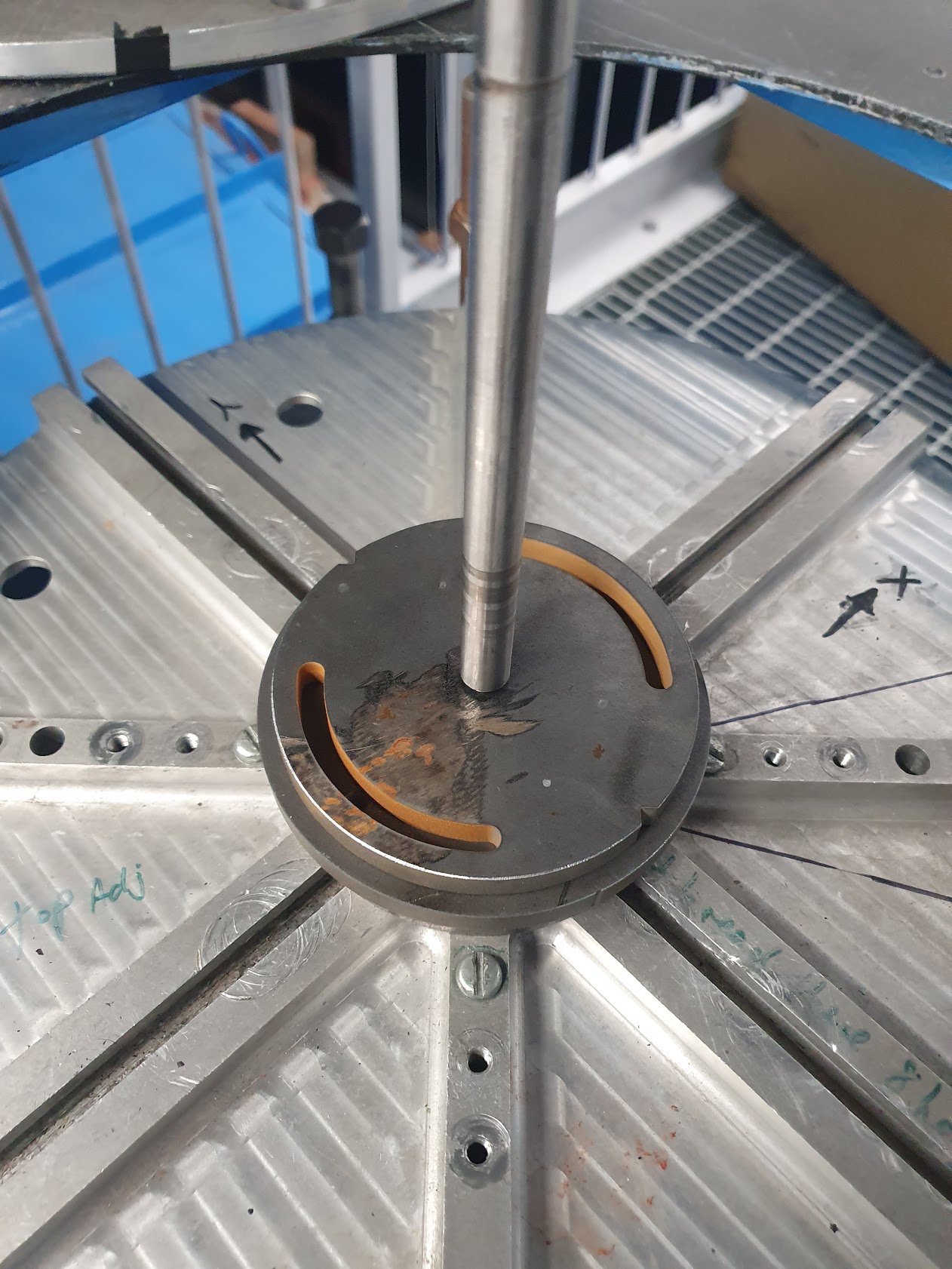 - Main plates were waterjet cut from 10 mm steel, and the inner rotating centre was turned to the required tolerance on the lathe.